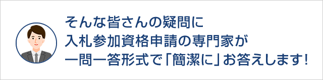 皆様の「わからない!」といった疑問にお答えするべく、行政書士法人スマートサイドが、今までの業務の中で培ってきた「入札参加資格申請」に関する疑問を、一問一答形式でご回答させて頂きます。