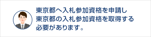 A:東京都の入札に参加するには、「東京都の入札参加資格」を取得する必要があります。