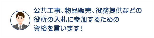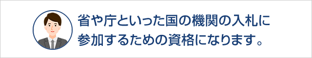 A:文部科学省や防衛省など、省・庁といった国の機関の入札に参加するために必要な資格です。