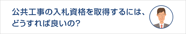 A:公共工事の入札参加資格を取得することが必須です。公共工事の入札参加資格を取得するには、経営事項審査を受けていなければなりません。